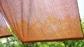 紫外線や湿気による劣化が進むと、生地がパリパリになり、触るだけで粉状に崩れることがあります。こうなると、処分作業そのものが非常にやりづらくなります。