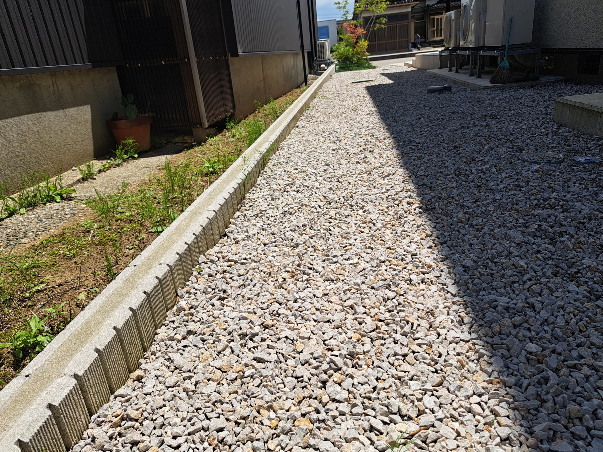 砂利敷きと防草シートの組み合わせ