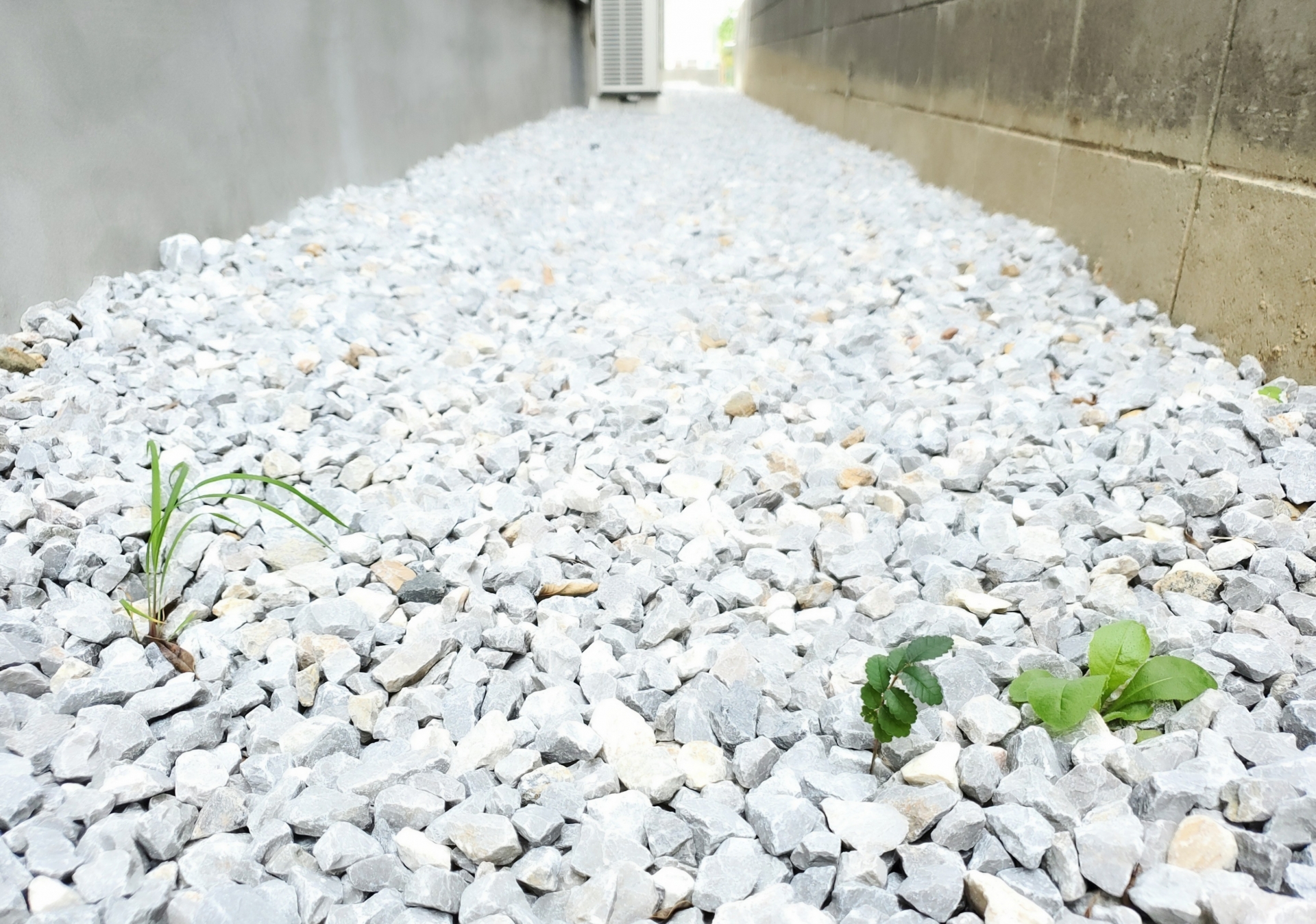 砂利を敷くことで地面に日光が届きにくくなり、雑草が生えにくくなります。